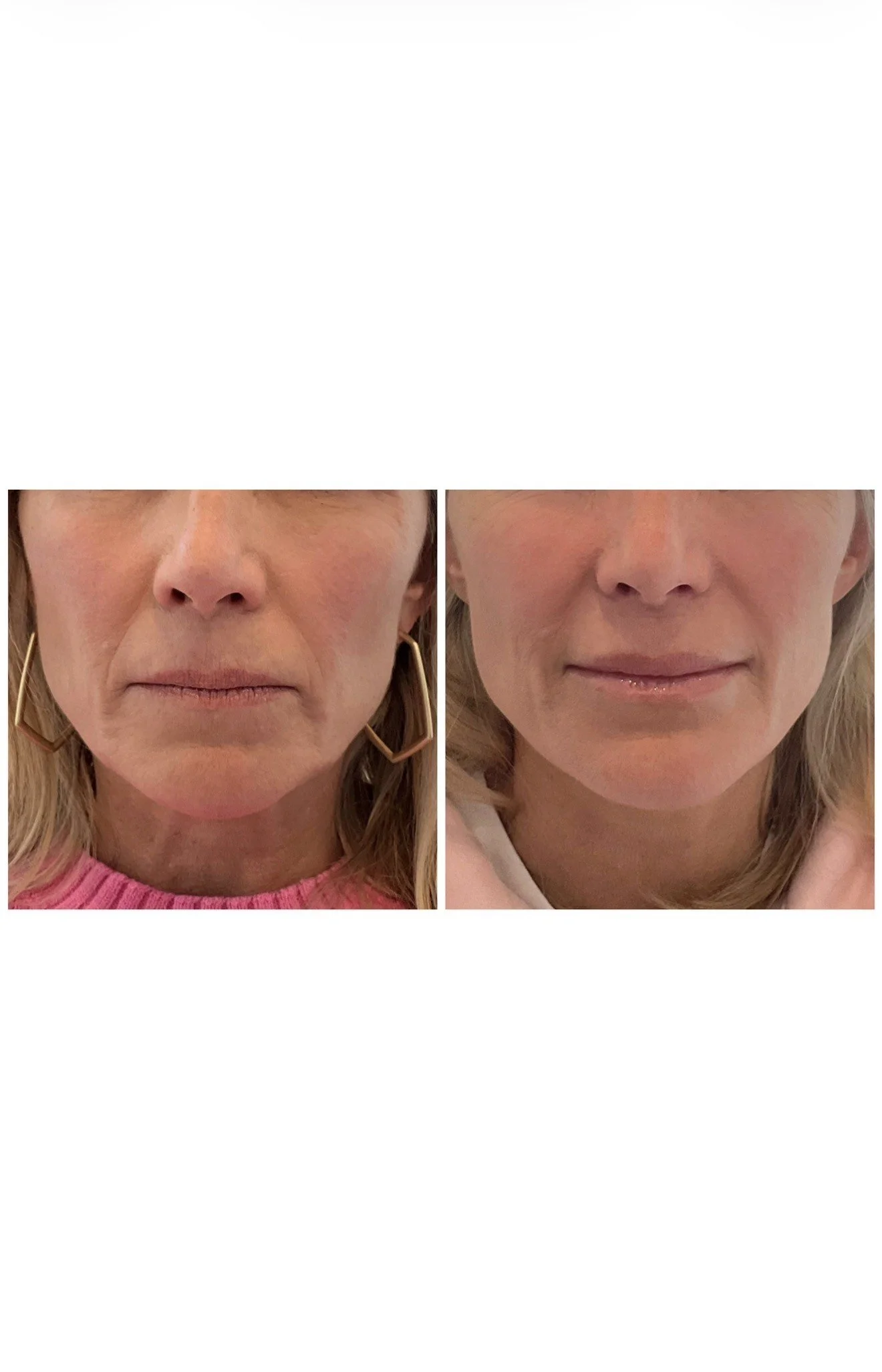 A before and after of a patient of ours in her 50’s treated with 2 vials.